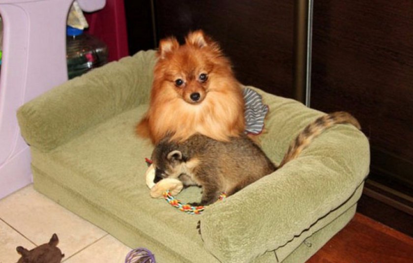 С котами и собаками одомашненные еноты дружны и не проявляют враждебности. Но в случае обиды, всегда готовы за себя постоять. А вообще, это довольно ласковые и дружелюбные животные, которые ладят как с людьми, так и с другими питомцами.